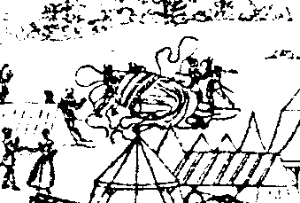 Another detail of the scene in figure 1. This suggests that at least some of the round tents in the picture had a type of eave bracing. |