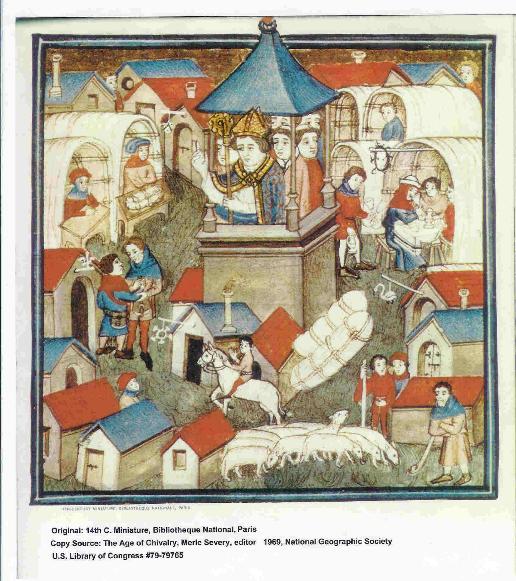 Figure 2. A period depiction of merchant's booths (from the Bibliotheque Nationale, Paris) |