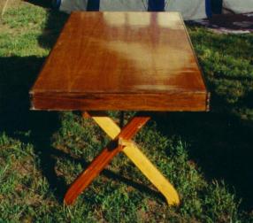 Figure 1 shows the table in its "transport" configuration. Figure 2 shows the legs and stretcher removed from the recess in the table.