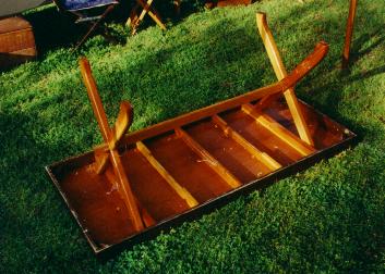 The little circles on the center stringer plan indicate where I've driven 1" screws halfway into the stringer. These act as pegs, providing a place to hold the length of shock cord that holds the legs and stretchers into the bottom of the tabletop. If you're using a different method of keeping the pieces together (or no method at all), ignore the circles.