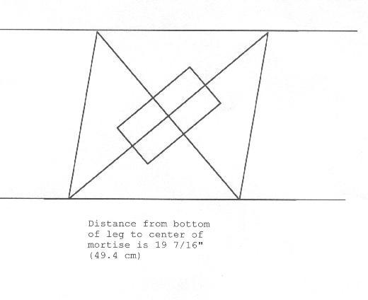 Now mark out the slot. You have a decision to make here. If you're very confident of your woodworking skills, You can make all the legs identical so that each will join with any of the others. I was not so confident, so I put the mating notch on one side of one pair of legs, and on the opposite side for the other pair of legs, so that each leg would mate with only one other leg. However you orient the notch, make sure that the template is properly oriented on the leg before you cut out the mating notch.
