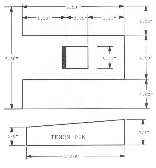 The full-size template also shows the dimensions of the tenon pins that you'll be cutting from the scrap. You'll need two of these, but you might as well make four of them so you'll have spares.