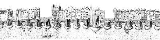 So if you go to London today for a look at London Bridge, take a few minutes to gaze a few yards downstream. That's where the medieval bridge used to be. It's not likely to ever be rebuilt, since London has become accustomed to having its river unimpeded. As a structure, it was in its day both an engineering near-marvel and a navigational near-disaster. And like so much of medieval London, it was an essential part of the city of its time, but proved unfit to be a part of the city that London would become.