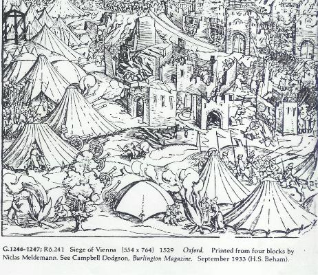 And as for that "Dürer Dome Tent," I spent many fruitless hours in libraries and on-line, looking at hundreds of images of Dürer's work, and have come to the conclusion that that depiction just doesn't exist. But a friend of mine gave me the following picture, and thinks that this may have been the source of the rumor: